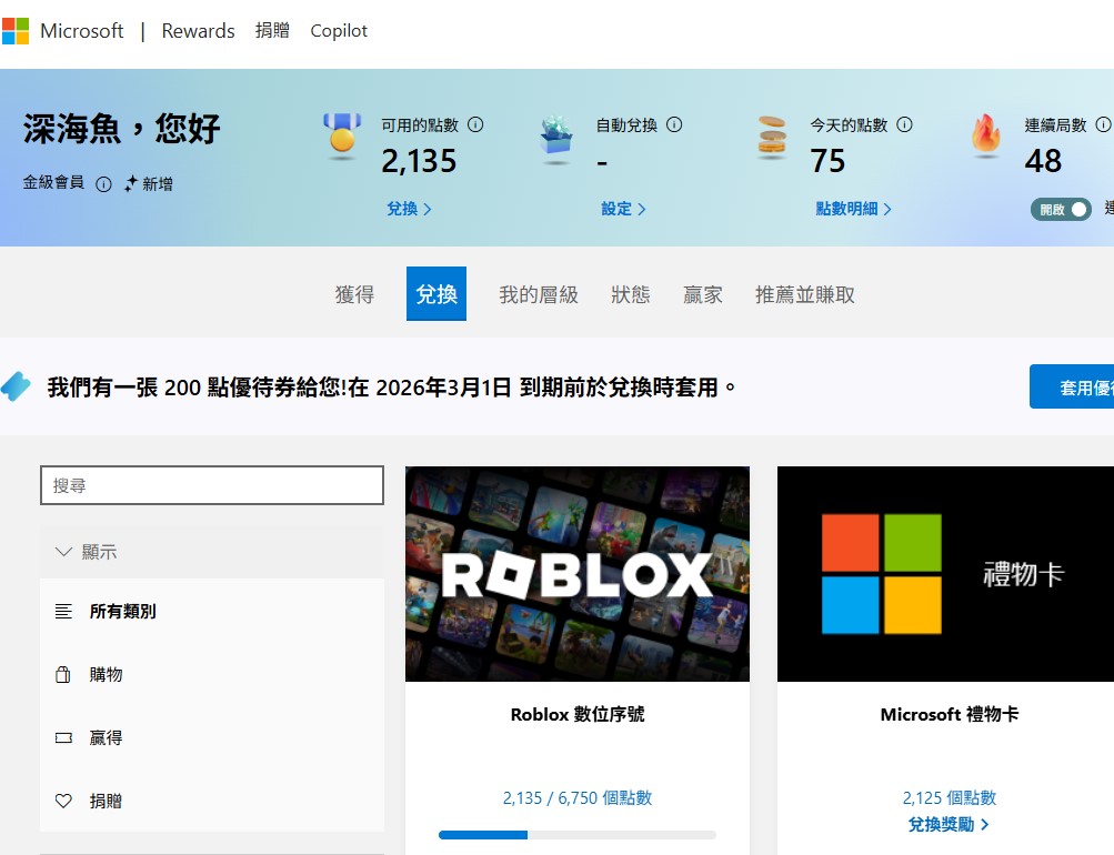 也可以換微軟的禮物卡或是XBOX點數哦