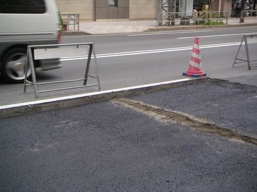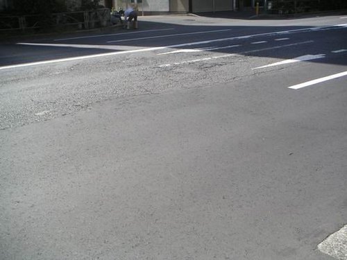 過了五個月的2005年九月,我又再度到日本的同樣地方,路面一樣平整,即使當初鋪得一樣平也沒有凹陷呀!!